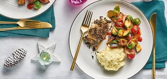 Serveer de aardappel-knolselderijpuree en de groente bij de vis.