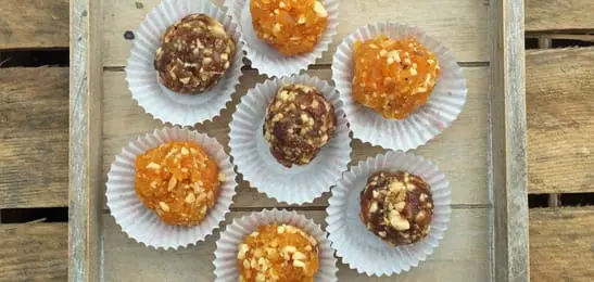 - Maal de abrikozen in de keukenmachine of met een staafmixer klein. Voeg de hazelnoten toe en maal het samen nog een paar seconden.