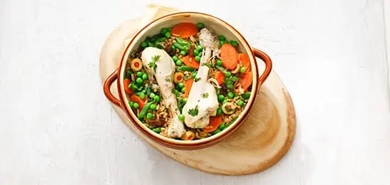 - Leg de drumsticks op de rijst. Laat het geheel goed heet worden.