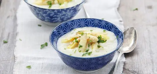 Kook de stukken asperge in het water met het stuk bouillon in 8 minuten gaar.