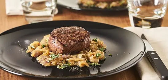 Voeg een beetje water aan de sjalotten toe en breng dit aan de kook. Breng de saus op smaak met wat peper en tijm.
