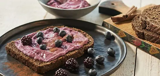 Pureer het fruit met een staafmixer of in een keukenmachine en klop de zuivelspread erdoor.