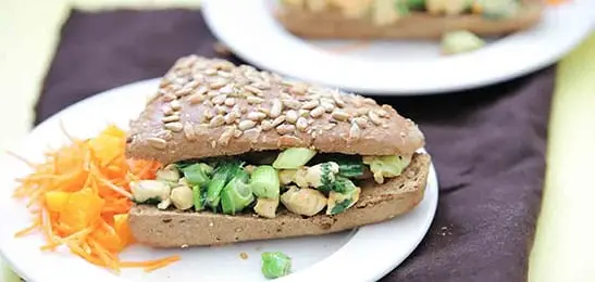 Verdeel de wortelsalade over 2 bordjes en zet de broodjes erbij.