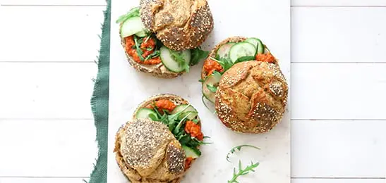 Recept van het Voedingscentrum: Broodje muhammara met rucola