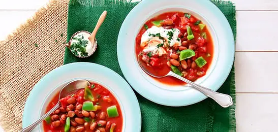 9. Schep aan tafel wat van de kruidentopping op de bonenchili en geef er brood bij.