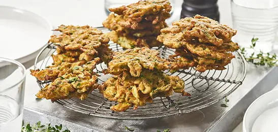- Druk de fritters plan en bak in 5-6 minuten gaar en lichtbruin.