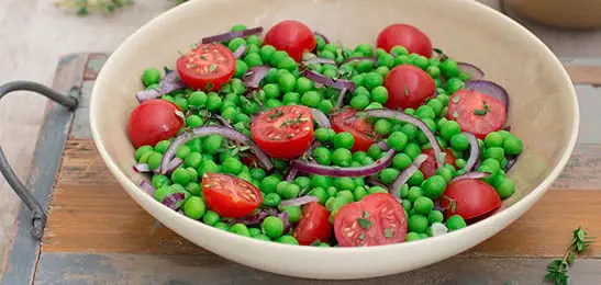Recept van het Voedingscentrum: Doperwten met rode ui en kerstomaatjes