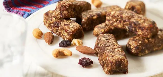 Je kunt de helft van de noten door chia-zaad vervangen en de rozijnen door gedroogde cranberries of gojibessen.