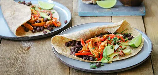 13. Bereid de wraps volgens de aanwijzingen op de verpakking. Serveer met de zwarte bonen, kip, avocado en salsa.