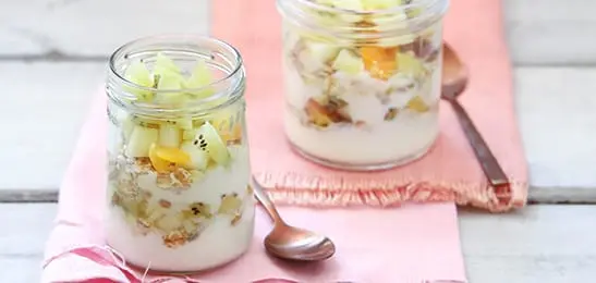 In plaats van yoghurt kun je ook verrijkte sojayoghurt gebruiken.