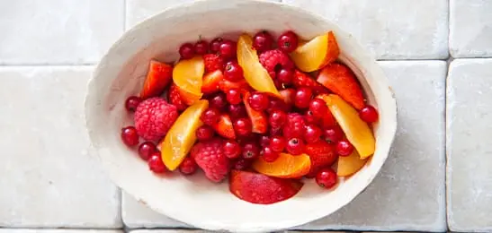 Recept van het Voedingscentrum: Fruitsalade met aardbeiendressing