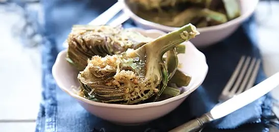 - Trek de blaadjes van de artisjok en schraap met je tanden het zachte deel van de harde blaadjes af. Deze harde blaadjes kun je niet eten. Uiteindelijk houd je het artisjokhart over. Deze kun je helemaal opeten.
