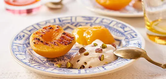 Gril het fruit aan elke zijde een minuut in de grillpan.
