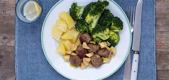 - Serveer de broccoli en aardappelen bij de gehaktballetjes.