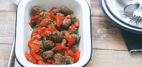 Verwarm de margarine in een koekenpan of braadpan en bak de gehaktballetjes in 8 minuten aan alle kanten bruin en gaar.