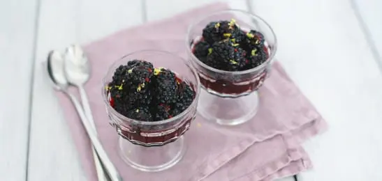De gemarineerde bramen smaken ook heel lekker met een schepje halfvolle yoghurt.