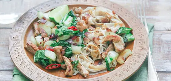 Recept van het Voedingscentrum: Geroerbakt varkensvlees met paksoi en noedels