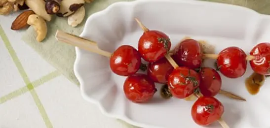 Recept van het Voedingscentrum: Geroosterde tomatenspiesjes met tijm