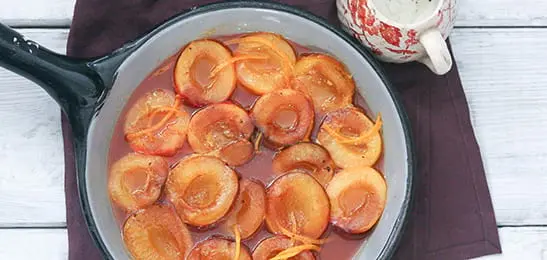 6. Leg de pruimenhelften erin en laat ze in 5 minuten zacht worden.
