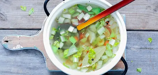 Haal het laurierblad eruit en serveer.