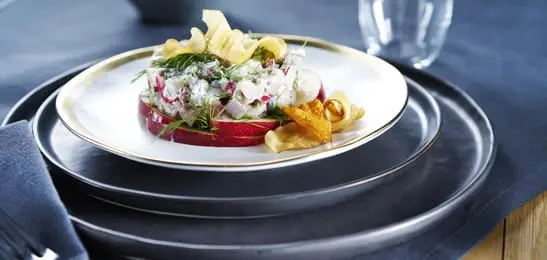 Haringtartaar met dille en groentechips