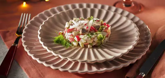 haringtartaar over de borden. Schep de reepjes radijs erop en garneer met de