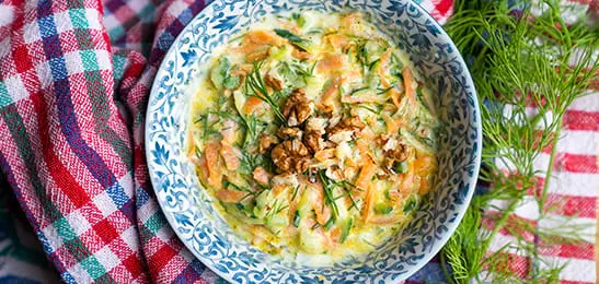 Meng de groente met de yoghurt en dille.