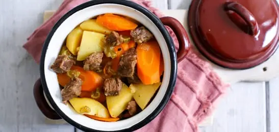 Doe de aardappelen en de plakken wortel in de pan en stoof het geheel in nog 20 minuten verder gaar.