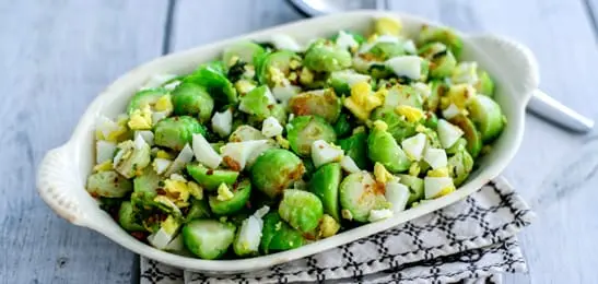 Recept van het Voedingscentrum: Lauwwarme spruitjessalade met aardappelpuree