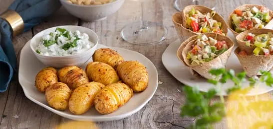 Serveer de aardappeltjes met de remouladesaus.
