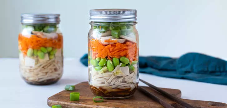 1. Verdeel de noedels over afsluitbare glazen of vershoudbakjes.