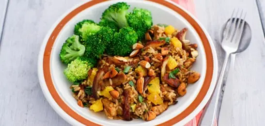 Was de peterselie en snijd klein. Meng de stukjes sinaasappel, peterselie en het vlees door de rijst.