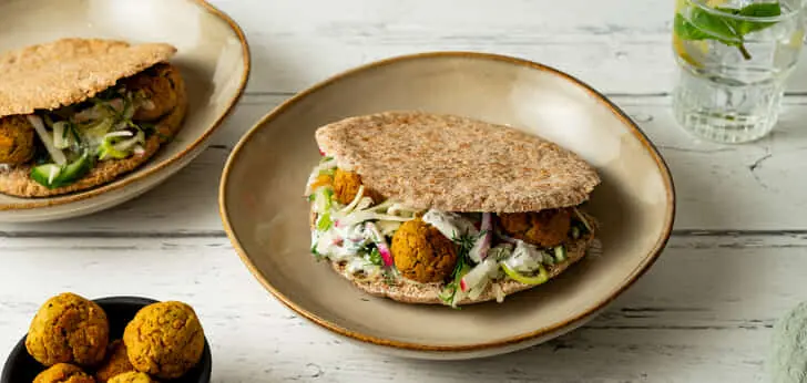Voor een gezonde variant maak je de falafel en tzatziki zelf.