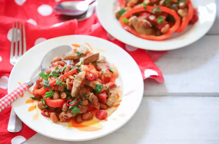 Snijd de kipfilet in reepjes en bestrooi ze met peper.