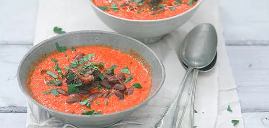 Roer de bonen door de soep en breng de soep weer aan de kook.