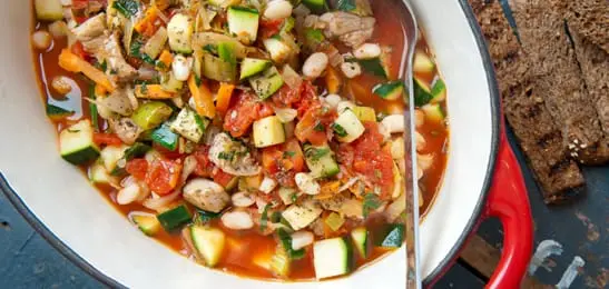 Spoel de bonen af en schep ze door de soep.