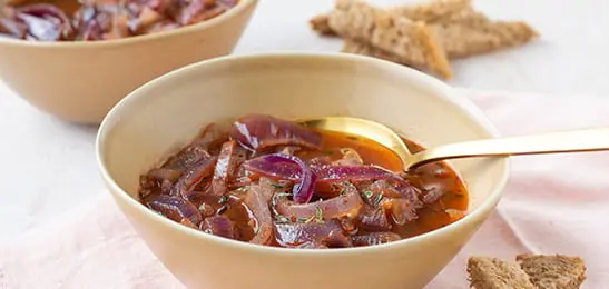 Rooster de boterhammen, snijd in repen en serveer bij de soep.