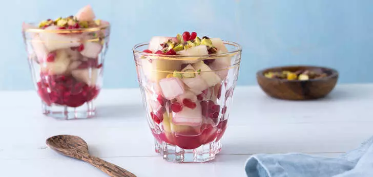 - Meng het fruit met het rozenwater en laat dit eventueel een uur afgedekt in de koelkast intrekken.