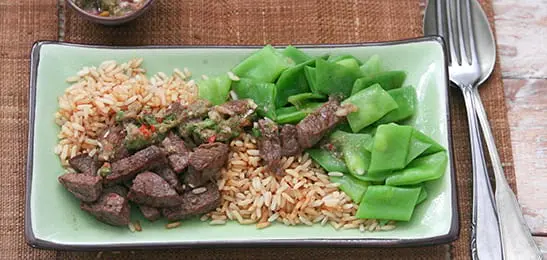 Recept van het Voedingscentrum: Runderreepjes met chimichurri, snijbonen en rijst