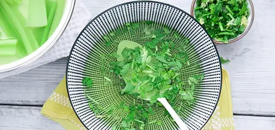- Maak de bleekselderij en de sjalot schoon en snijd de groente in stukken.