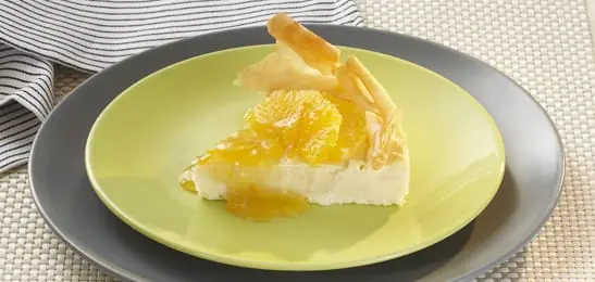 Verdun de marmelade met een beetje van het sap en schep dit over de taart.