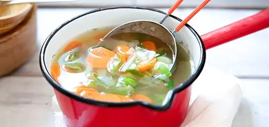 Voeg de rest van de groente toe en laat de groente in een paar minuten gaar worden. Verwijder het laurierblad.