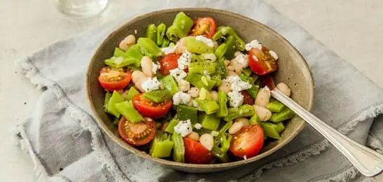 Recept van het Voedingscentrum: Snijboontjes met witte bonen en geitenkaas