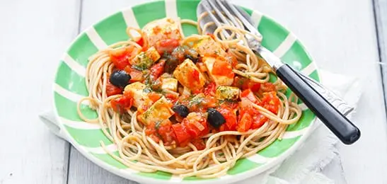 Spaghetti met olijven-tomatensaus