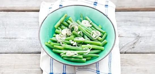 Giet de sperziebonen af en schep de sjalottendressing erdoor. Laat de groente afkoelen.