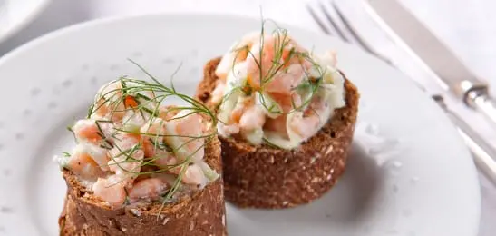 - Meng de garnalen met 1 eetlepel van de yoghurt en wat dille en laat dit 1 uur in de koelkast marineren.