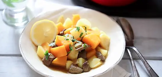 Maak de stoofpot op smaak met wat citroensap en strooi de peterselie erover.