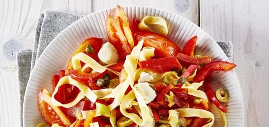 Giet de tagliatelle af en meng de saus erdoor.