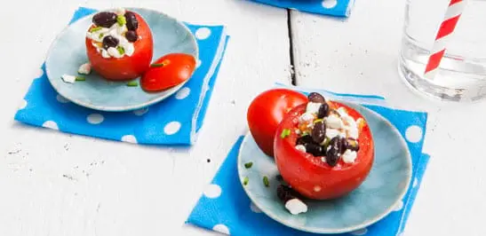 Vul hiermee de tomaten en leg de bovenkant er weer op.