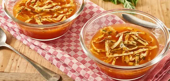 Recept van het Voedingscentrum: Tomatenbouillon met omeletreepjes